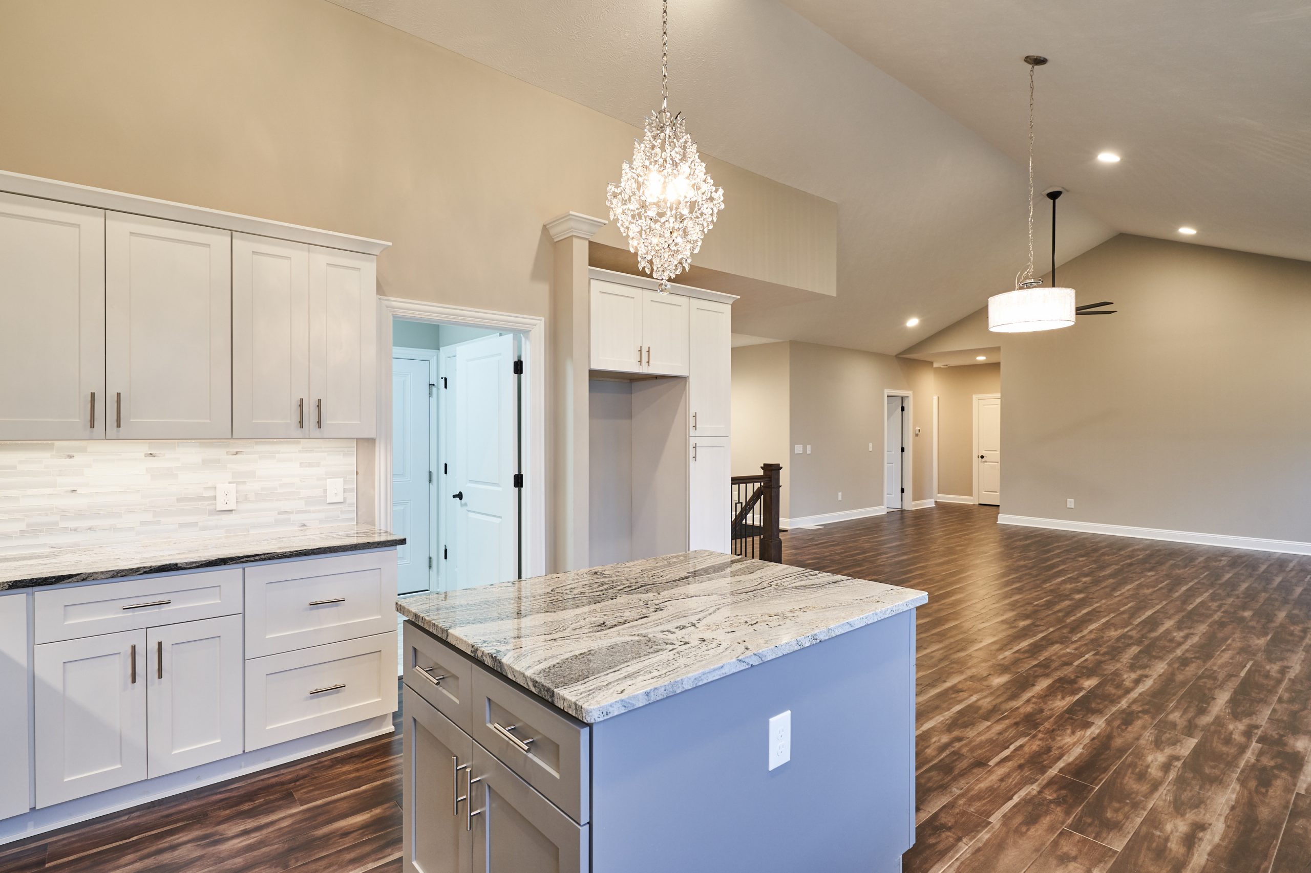 Contemporary ranch with vaulted ceilings and an open floorplan.